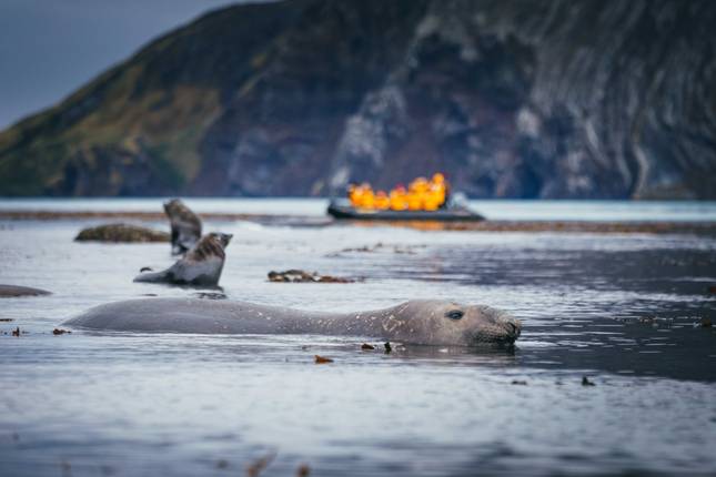 Arrive in South Georgia, where across the island, dark volcanic beaches are backgrounded by hanging glaciers and local king penguins nest among tussock grass. Over the next few days, explore the island – once the homestead of whalers and isolated explorers and now, a protected area with dedicated Antarctic research teams. Learn more about Sir Ernest Shackleton’s story on your various excursions to land. It’s on these very shores in South Georgia that Shackleton landed his crew of the James Caird in search of help for his party who were stranded back on Elephant Island. You can visit his grave at the settlement of Grytviken, which is also home to an old whaling station, with a museum, gift shop, church and small research station. Each landing you make on South Georgia, often referred to as the Galapagos of the Southern Sea, will open your eyes to the lives of the wildlife. One day, you may see colonies with hundreds of thousands of king penguins waddling on shore, and the next, you might visit another beach inhabited by fur or elephant seals. The grasses, mountains and beaches of South Georgia all play an important role in the breeding and survival of different species on the island and your expedition team will teach you all about them!