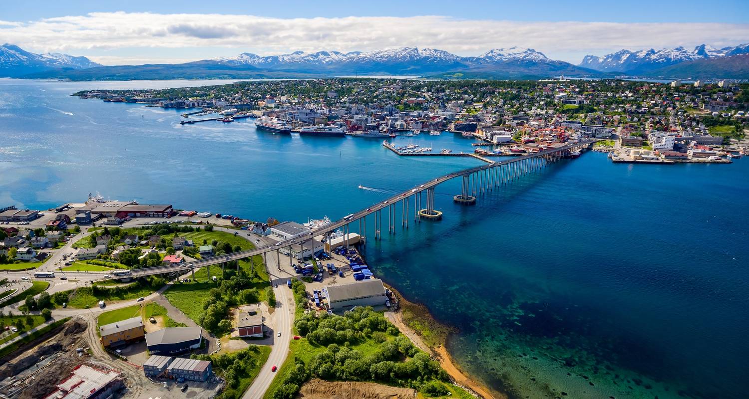 Tromso, surrounded by serene blue fjords and majestic mountains, sits right in the heart of the Northern Lights zone, making it a top destination for witnessing this incredible spectacle. This morning you'll have some time to explore the local area. The Polar Museum is a short walk from your hotel and gives an insight in to the explorers, adventurers and researchers of the arctic region. Later this morning we'll make our way to Full Steam, a one-of-a-kind Norwegian restaurant-museum celebrating the cod fishing industry that shaped Northern Norway. We'll meet a local storyteller, who will guide us through the significance of seafaring to the culture of Tromso, and we’ll taste some delectable local cod delicacies. We'll uncover the city's gems with a local guide on a tour this afternoon. The Arctic Cathedral steals the spotlight; this striking triangular structure rises high into the air and bears an uncanny resemblance to an iceberg reaching for the sky. We'll round off our sightseeing adventure by taking a cable car ride to the summit of Mount Storsteinen, which offers amazing panoramic views of the city below, and if luck is on our side, it's also a prime spot for catching the Northern Lights.