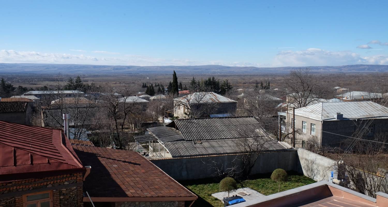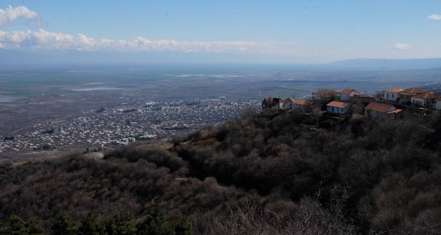 Drive to Georgian wine region: Kakheti province. Visit convent of Bodbe, the territory of the monastery offers excellent views of Alazani Valley and Caucasus mountains. Continue to fortified city of Signagi, walk in the old town and visit traditional Marani (wine cellar), here we will taste traditional Georgian wine, made in clay vessels, called Qvevri. After Signagi we drive along the foot of Caucasus mountain range, visit Gremi fortress and hike up to Nekresi Monastery complex (around 2-3 hours) built in the 4th century. Check in to winery hotel, where we will taste famous local dish Shashlik served with the red wine Saperavi.