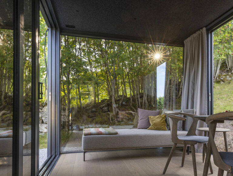 Every room is different and with a history, yet comfortable and luxurious. You can also choose to stay in the glass cabins, where the whole front is glass (not see-through from the outside), and you can enjoy the fantastic view and the alpacas from your couch or bed. These are also equipped with kitchen and a bathroom with rain shower.